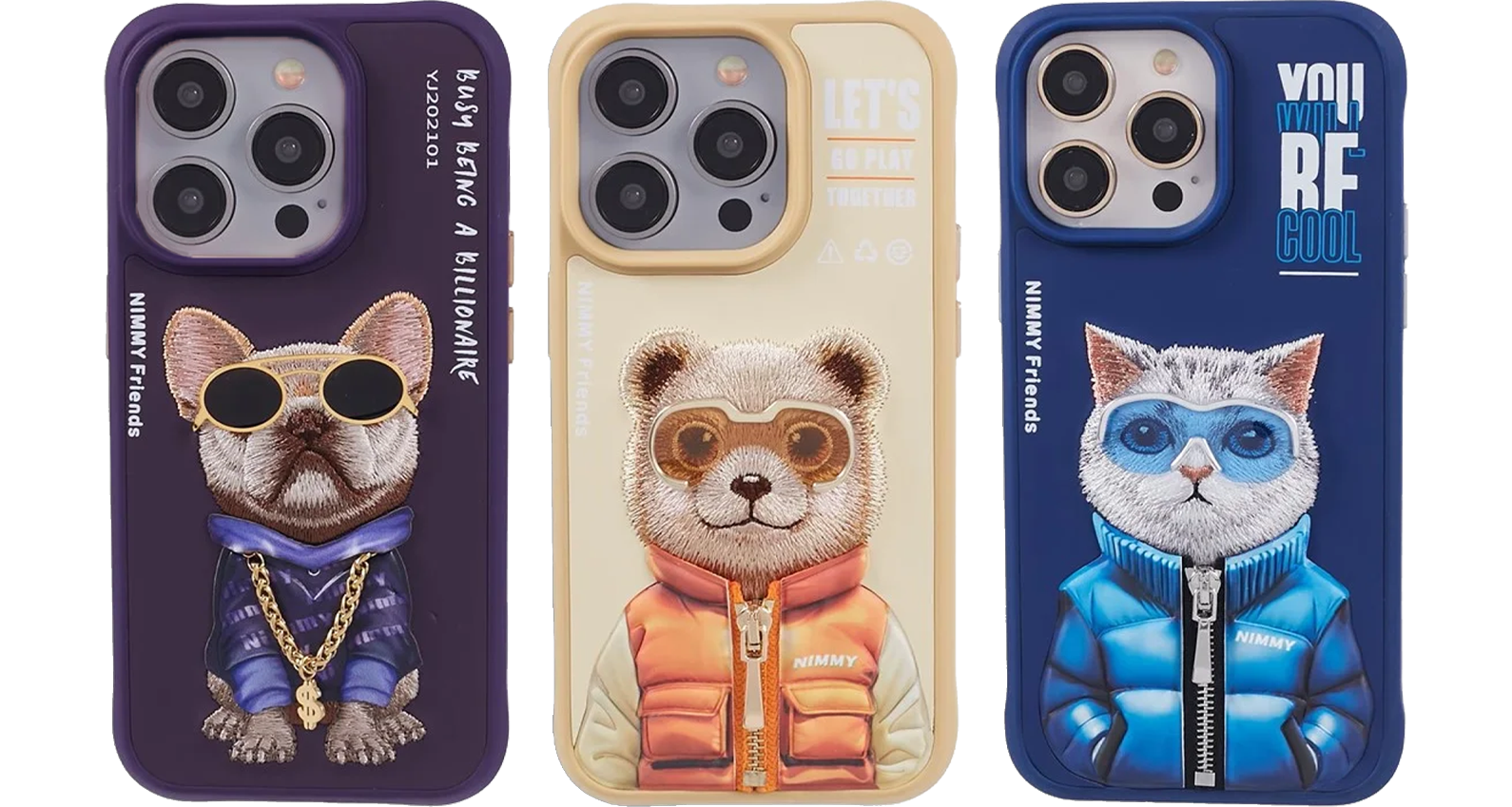 Les coques Nimmy pour iPhone sontcélèbres pour leurs broderies 3D en relief représentant des animaux stylisés(lions, pandas, chiens, chats). Alliant cuir synthétique haut de gamme et silicone, elles offrent une protection robuste avec un design artistique unique.